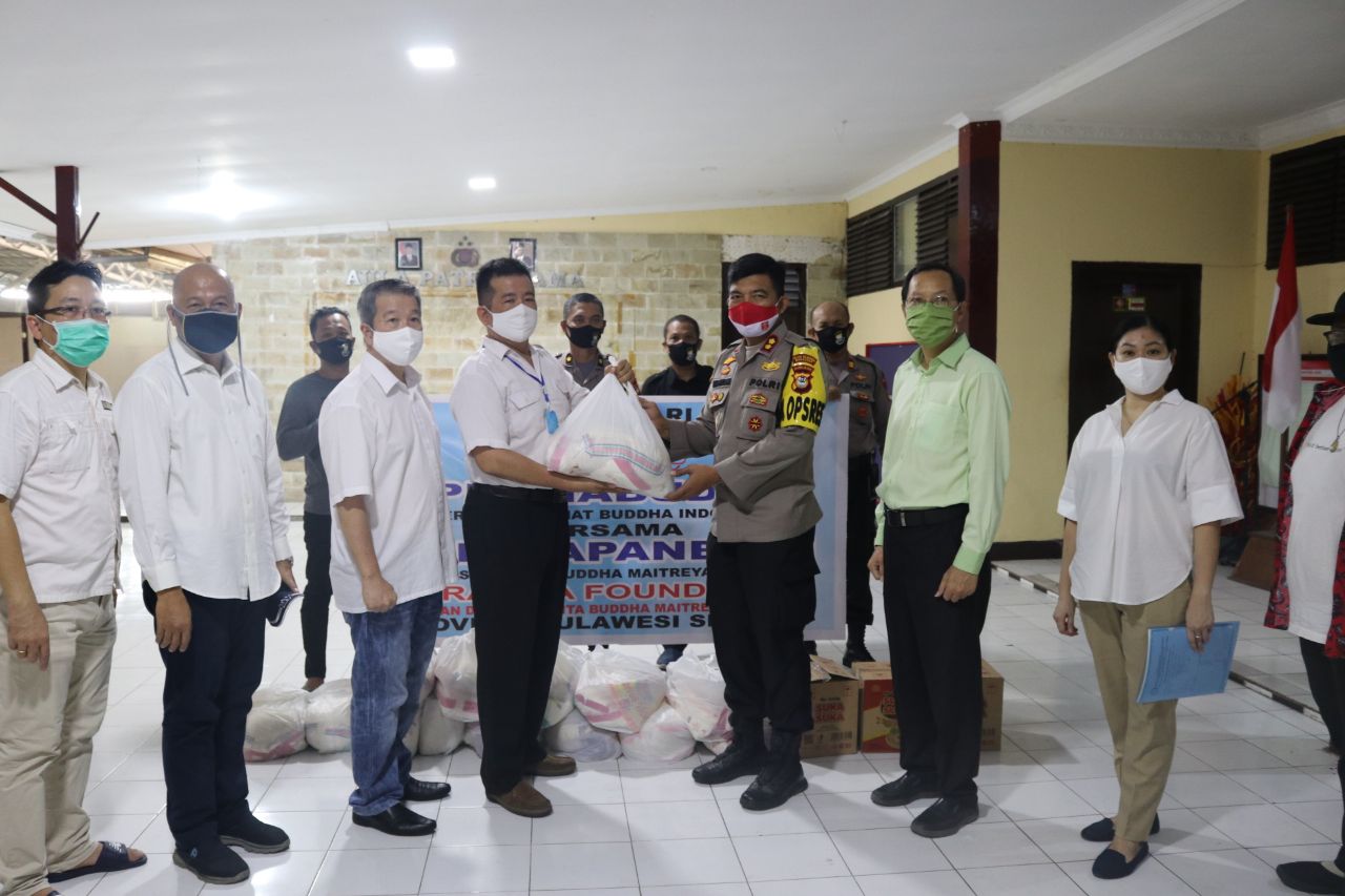 Kerjasama dengan PERMABUDHI Sulsel, Polres Pelabuhan Salurkan Sembako untuk Warga Terdampak Covid