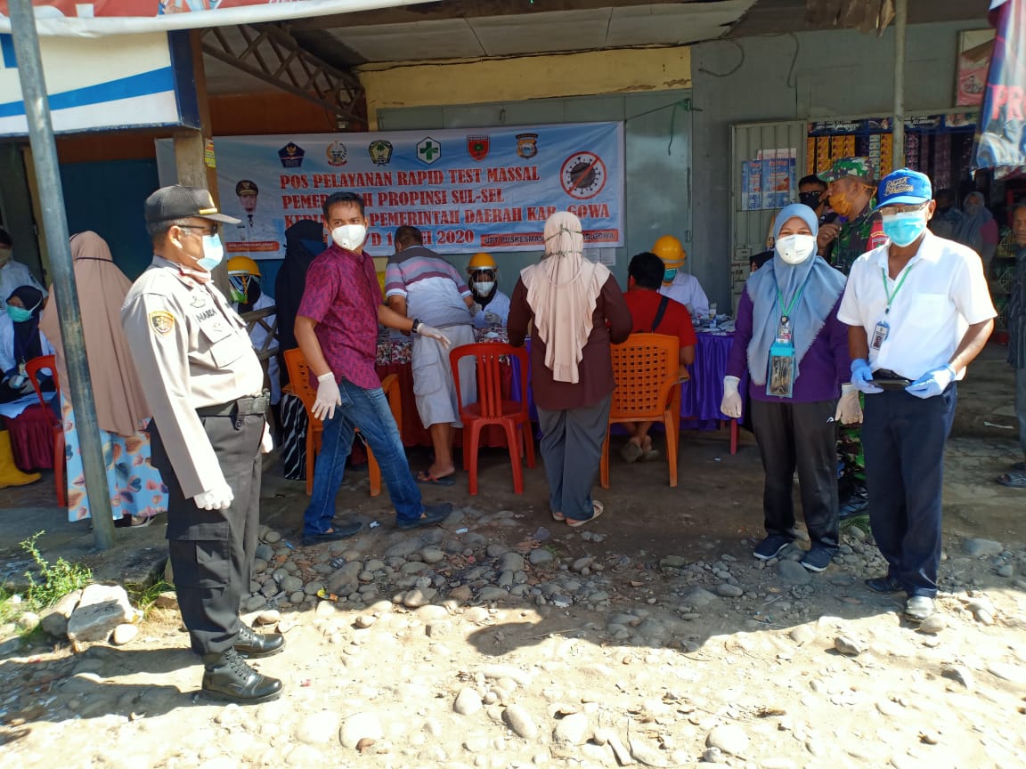 Putus Mata Rantai Virus Corona, Polsek Bajeng Bersama Puskesmas Bajeng Lakukan Rapid Test pada Pedagang dan Pengunjung Pasar