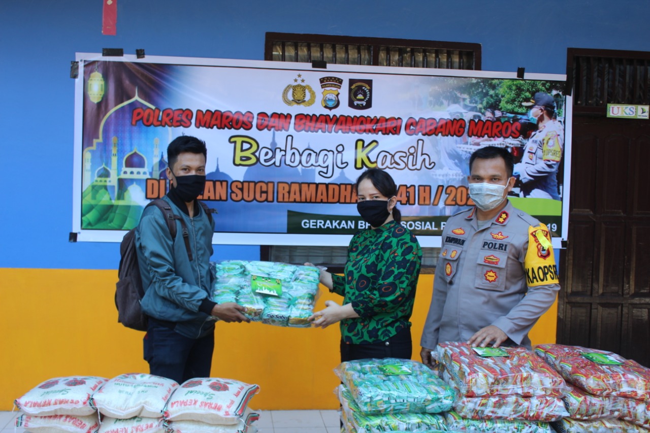 Ditengah Pandemi Virus Corona, Polres Maros Serahkan Bantuan Sembako untuk Tukang Ojek dan Karyawan yang Dirumahkan