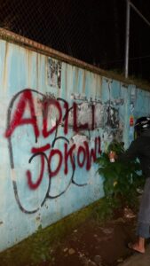 Coretan dinding bertuliskan “Adili Jokowi” semakin menjamur di berbagai sudut Kota Makassar