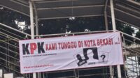 Spanduk KPK Kami Tunggu di Kota Bekasi Terpasang di Depan Gedung Merah Putih KPK